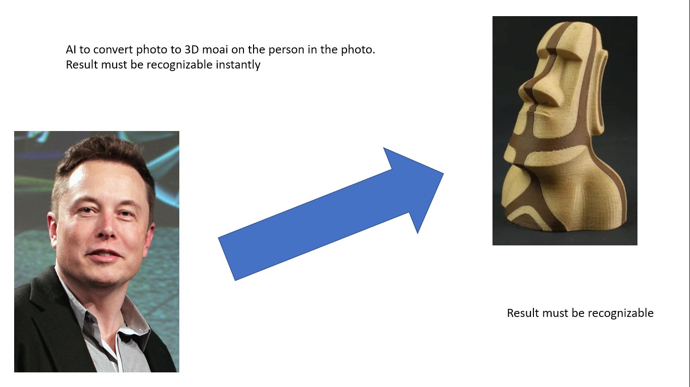 вопрос как замапить 3D фигуру на 3D моаи чтобы было узнаваемо? Например Элон Маск чтобы получился как моаи Элон